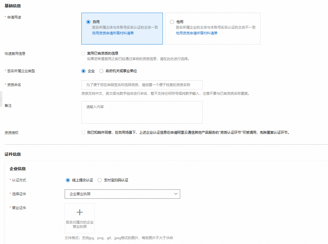 填寫企業(yè)資料,資質(zhì)命名填你的企業(yè)名,上傳企業(yè)營業(yè)執(zhí)照。