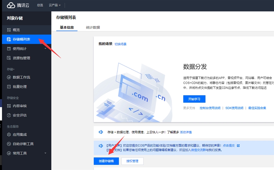 一、登錄騰訊云,在云存儲(chǔ)中創(chuàng)建【存儲(chǔ)桶】名字自己寫