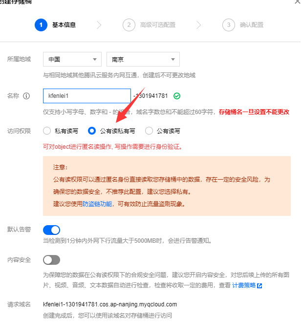 訪問權(quán)限設(shè)置為【公有讀私有寫】