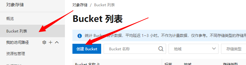 在【Bucket列表】中,點(diǎn)【創(chuàng)建Bucket】