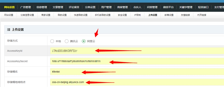 創(chuàng)建好后,登錄【框分類(lèi)后臺(tái)】【網(wǎng)站設(shè)置】【上傳設(shè)置】