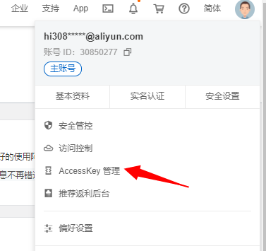 在AccessKey管理中,可以看到你的AccessKeyId、AccessKeySecret