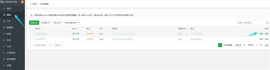 登錄寶塔管理 - 網(wǎng)站 - 設(shè)置