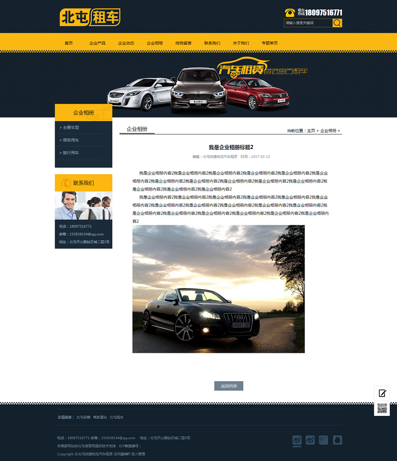 【企業(yè)建站模板】汽車租賃電腦端+手機(jī)端模板