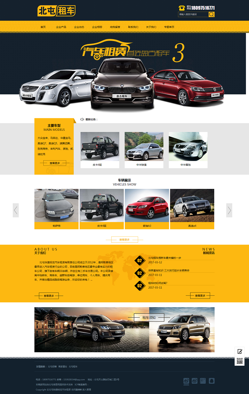 汽車租賃電腦端+手機(jī)端,合適汽車行業(yè)大氣簡潔