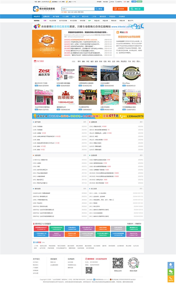 首頁幻燈片、新聞、網(wǎng)站公告、熱門商家、信息分類、信息列表模板、底部帶便民電話