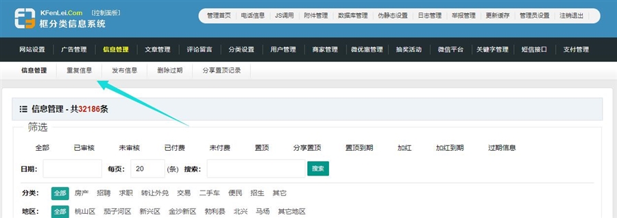 在后臺(tái)信息管理中,可以查看重復(fù)信息的