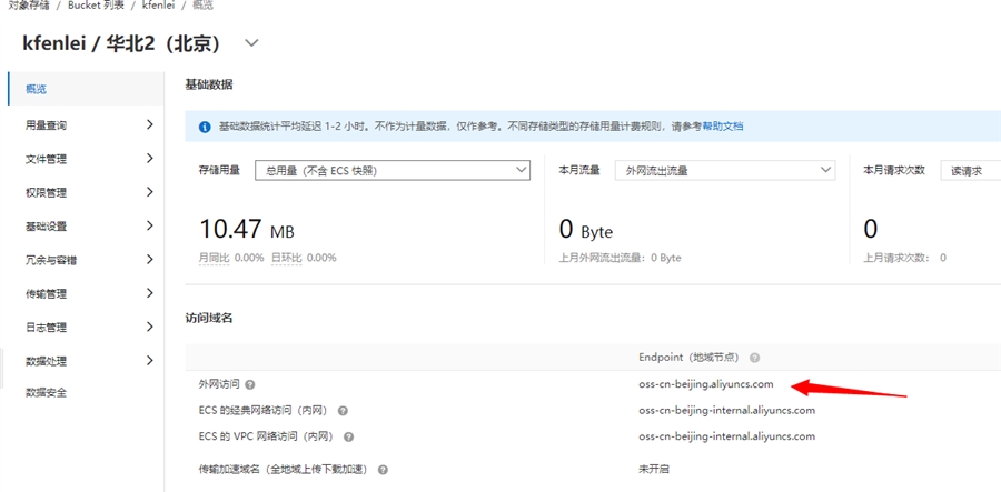 點(diǎn)擊存儲(chǔ)桶名,在概述中,可以看到地域結(jié)點(diǎn)