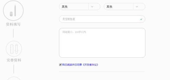 填寫資料 網(wǎng)站類別選擇其它,網(wǎng)站名稱最好和備案上的一至,網(wǎng)站簡介自己寫一個就可以了