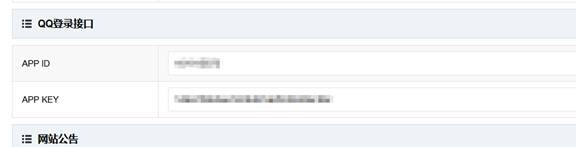 填寫到“網(wǎng)站后臺 – 網(wǎng)站設置 - QQ登錄接口“中的APPID和APPKEY