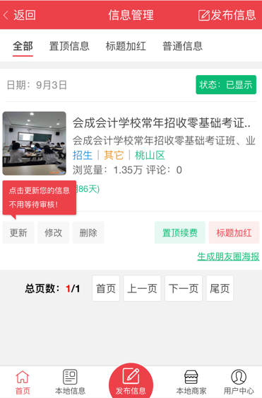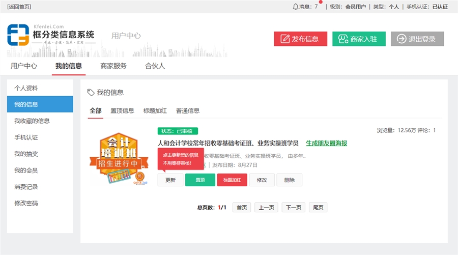 然后跳轉(zhuǎn)到信息管理頁(yè)面,提示用戶(hù)點(diǎn)擊更新按鈕