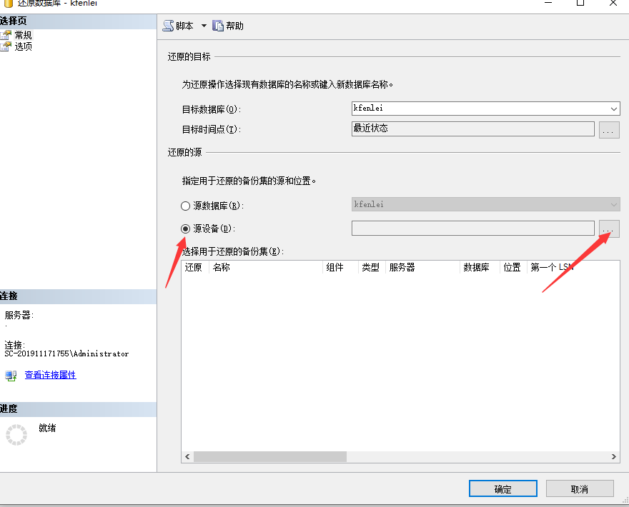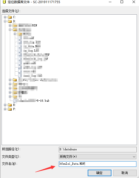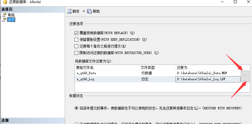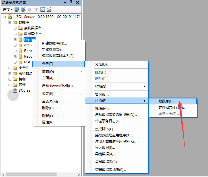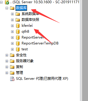 先找到要還原的數(shù)據(jù)庫,這里以kfenlei為例