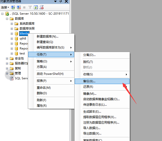 在kfenlei數(shù)據(jù)庫上右鍵,任務(wù),備份