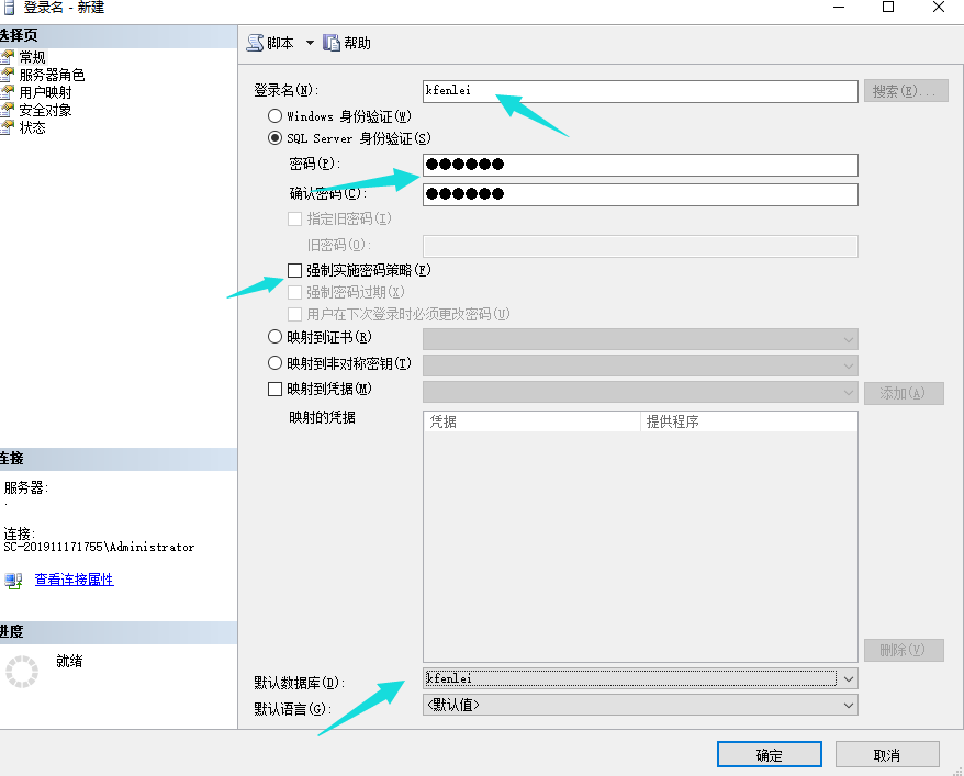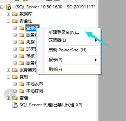 數(shù)據(jù)庫還原好后,我們要為數(shù)據(jù)庫重新創(chuàng)建一個(gè)登錄賬號(hào)和密碼