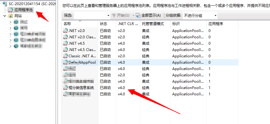 點擊應(yīng)用程序池,找到網(wǎng)站對應(yīng)的應(yīng)用程序池,雙擊
