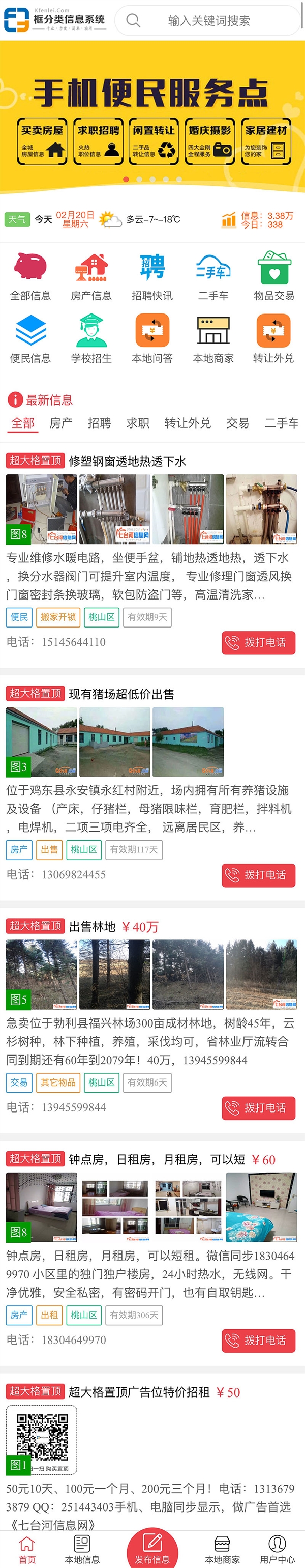 包含分類列表,最新置頂信息,熱門商家、頭部、中部、底部廣告位 推薦信息調(diào)用為優(yōu)