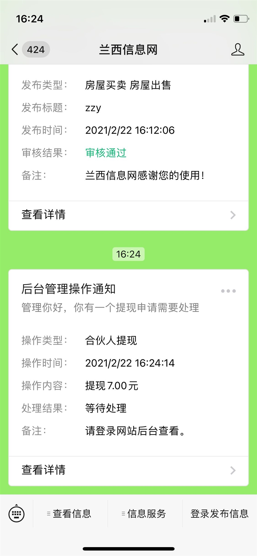 我發(fā)了一條發(fā)布信息 需要審核的 但微信公眾號(hào)上沒有通知,我上傳的圖片是別人的后臺(tái)管理操作通知,而我沒有這些