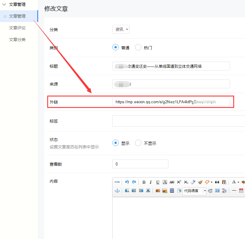 在管理后臺增加了文章,直接加了微信圖文消息的連接,在小程序中無法打開這條圖文消息!