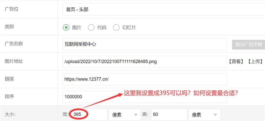 每個手機的寬度是不一樣的,所以手機廣告的寬度可以直接設置成100%,后臺的像素可以改成%的